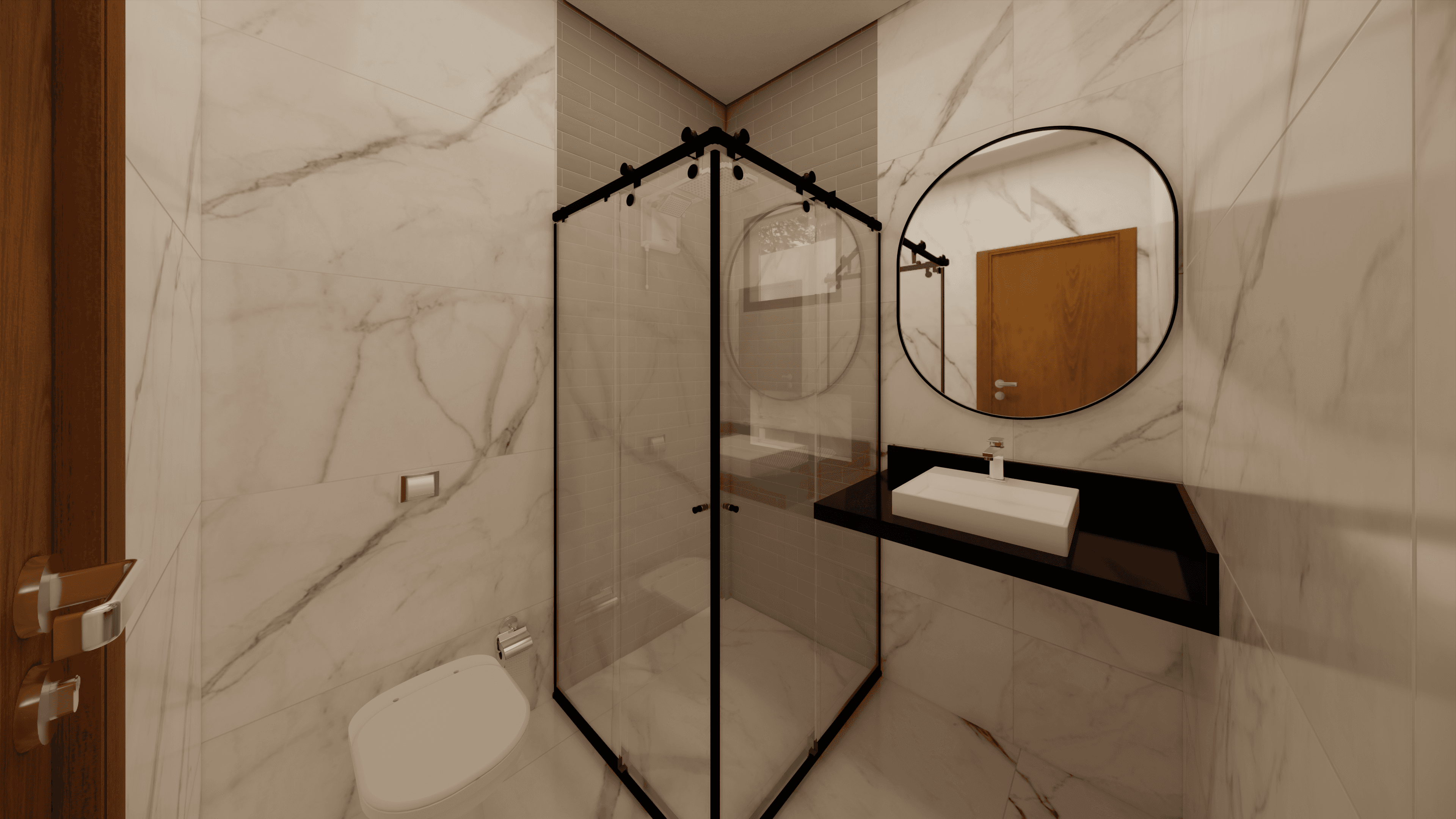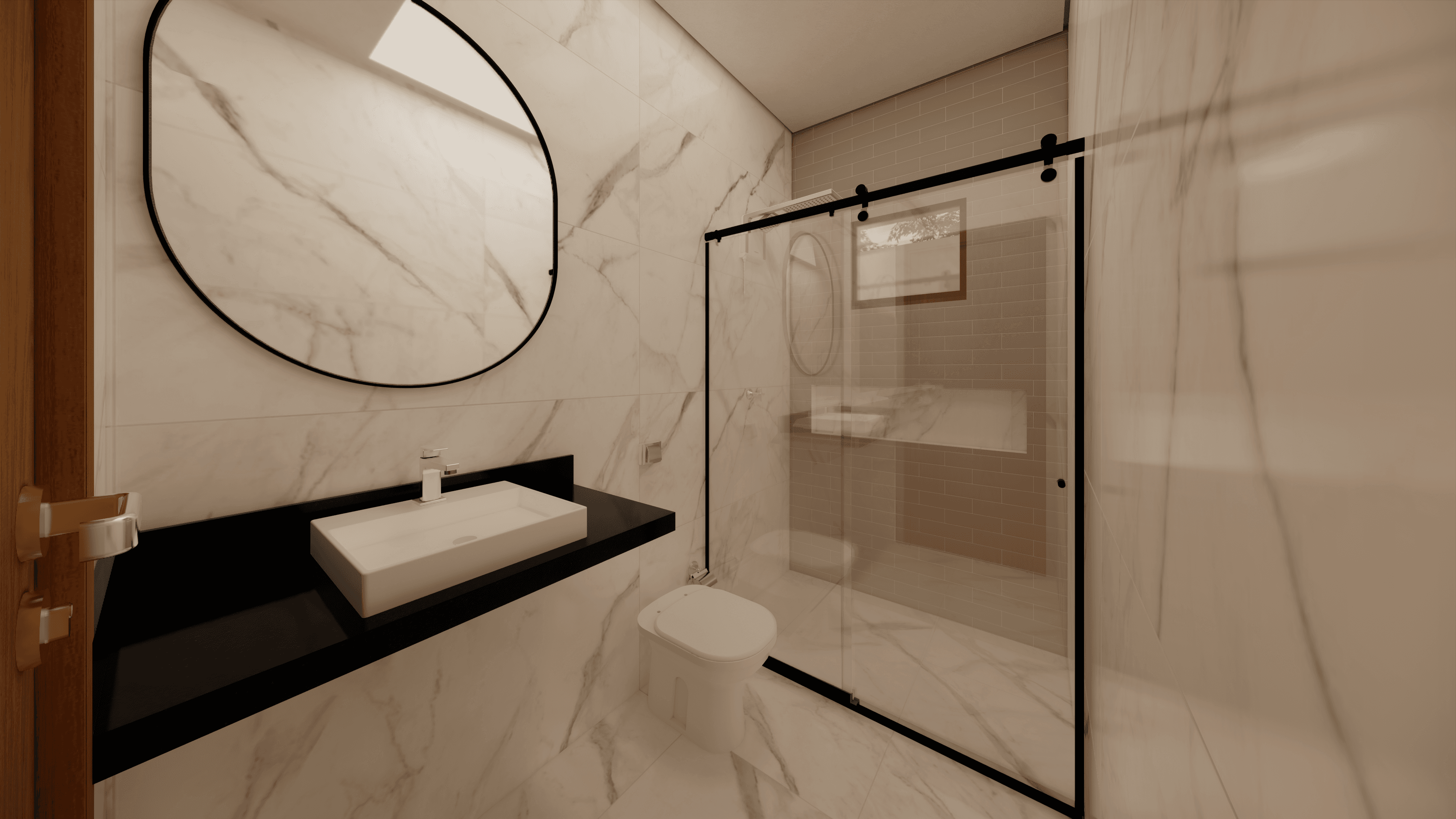 No piso superior, a área íntima é composta por 1 suíte, 2 quartos, banheiro social e home office, garantindo conforto, funcionalidade e versatilidade para o dia a dia da família.