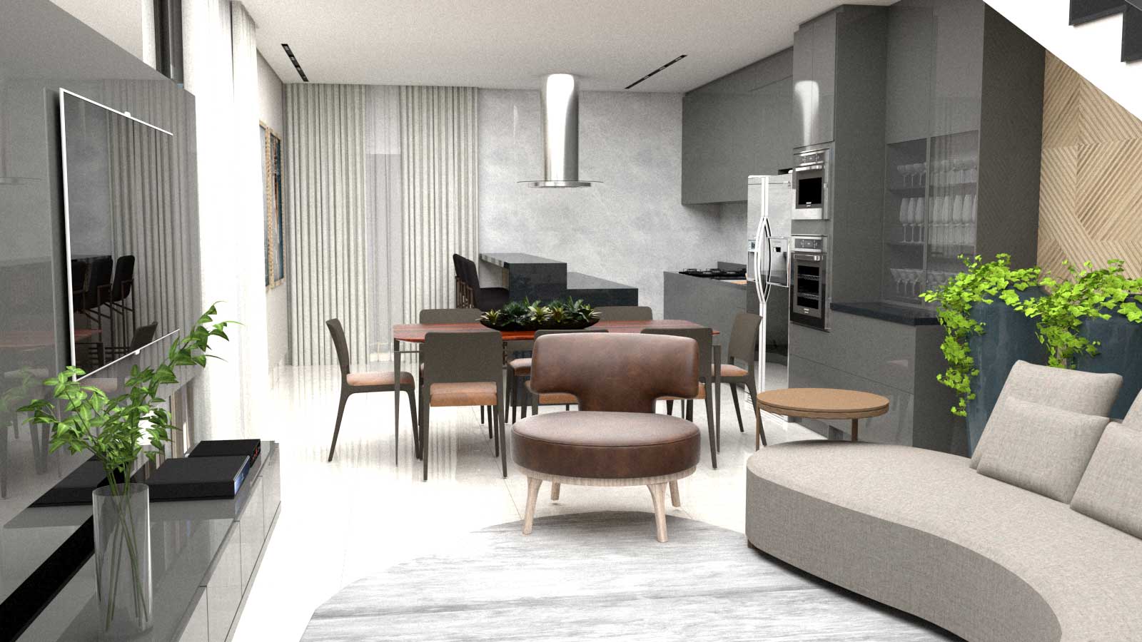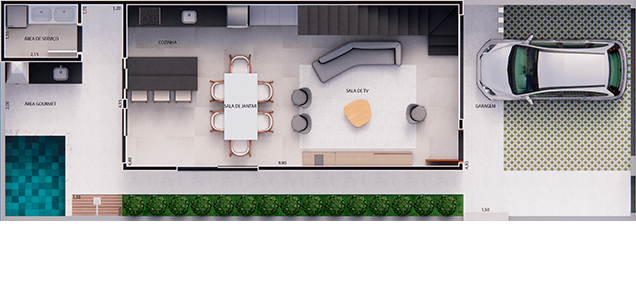 Residência de dois pavimentos, com ambientes bem distribuídos e foco em conforto e lazer. No térreo, conta com sala de estar e jantar integradas, cozinha, área de serviço, área gourmet com churrasqueira, piscina e garagem. No pavimento superior, dispõe de 1 suíte, 2 quartos, banheiro social, home office e sacada.