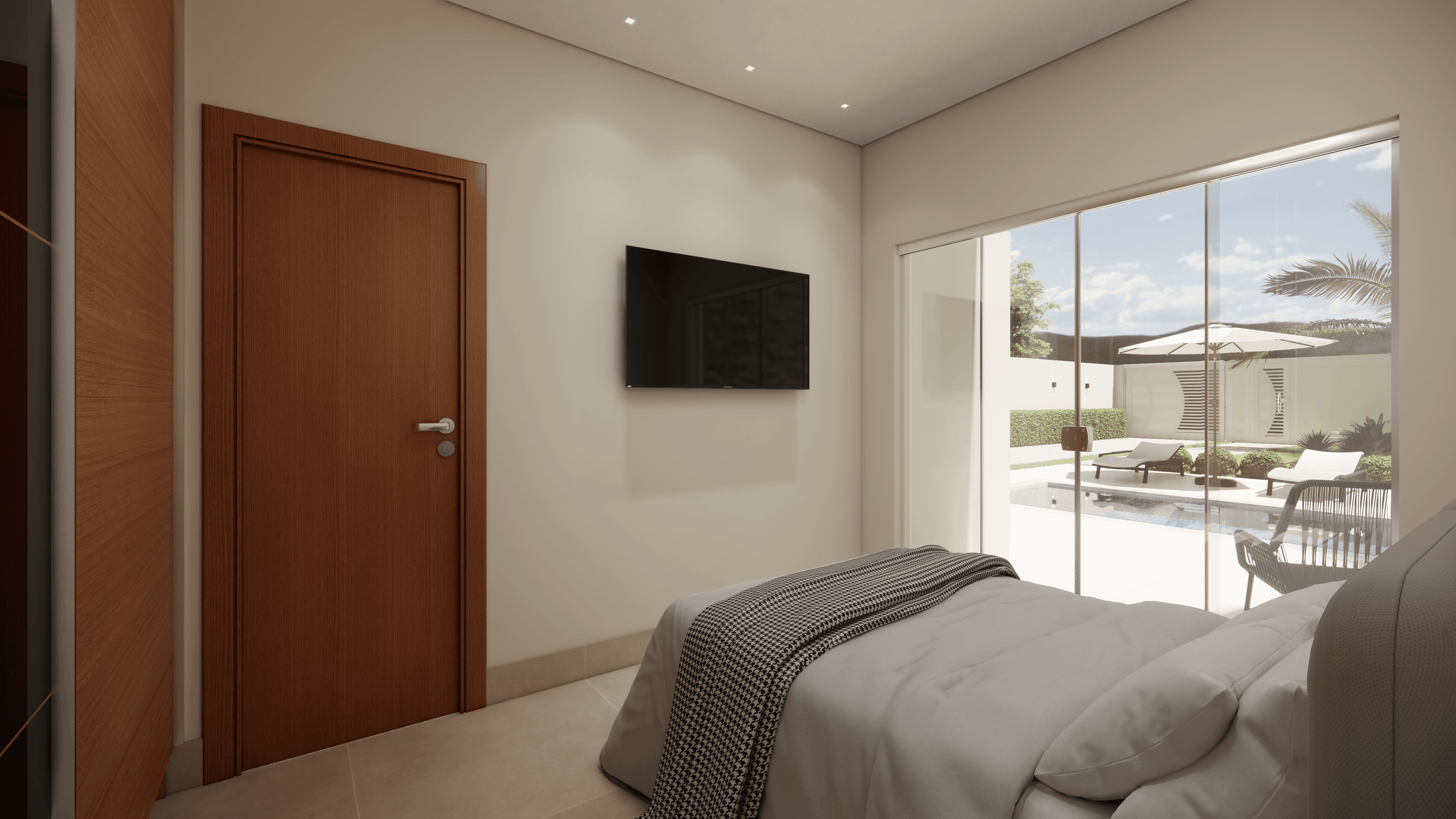 Na área externa, destaca-se a área gourmet com churrasqueira, integrada à piscina, criando um ambiente perfeito para momentos de descanso e confraternização.