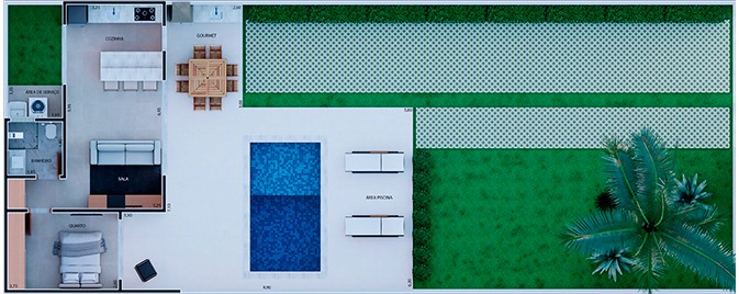 Com distribuição inteligente dos espaços e excelente aproveitamento do terreno, o projeto alia funcionalidade, conforto e qualidade, atendendo diferentes finalidades de uso.