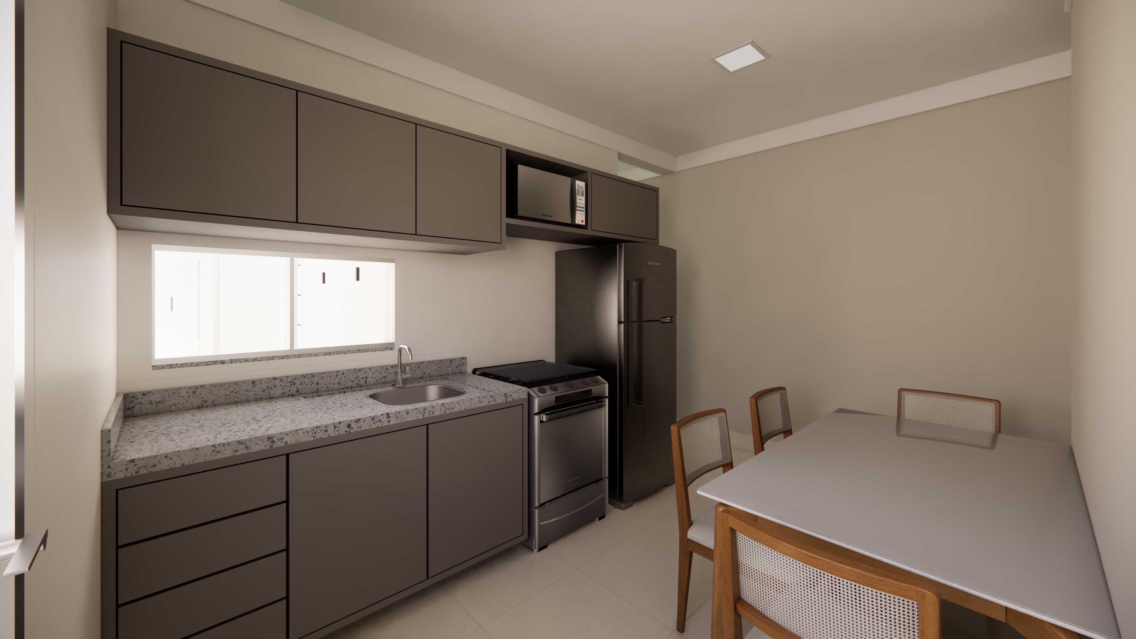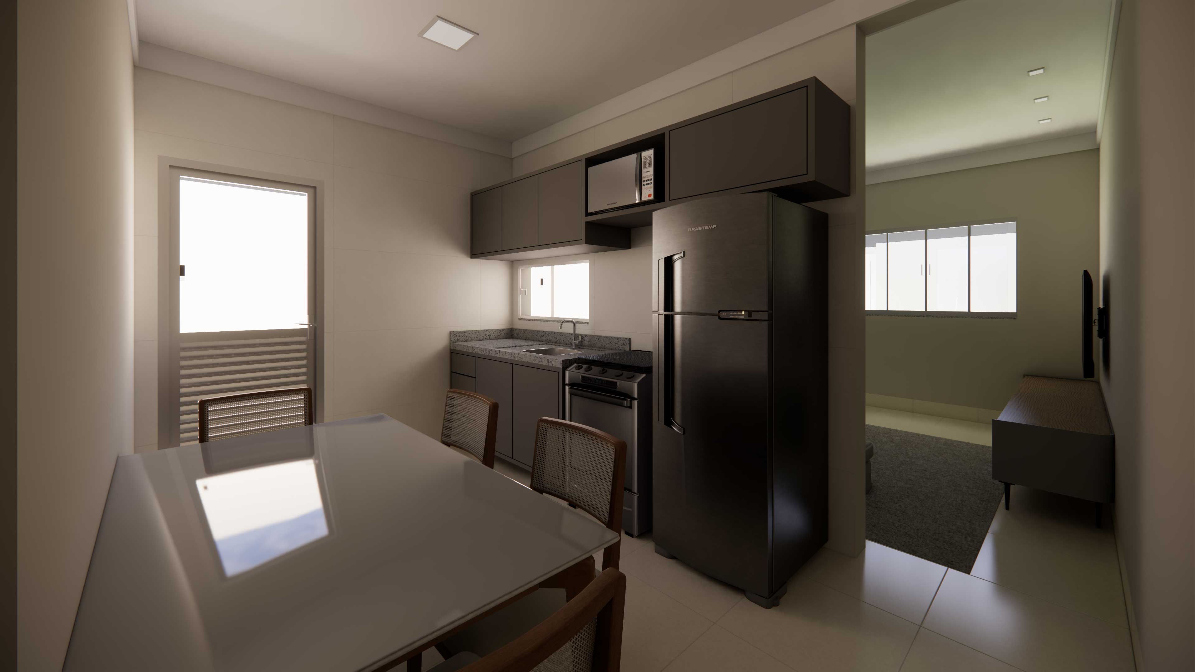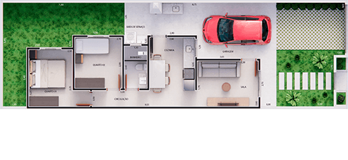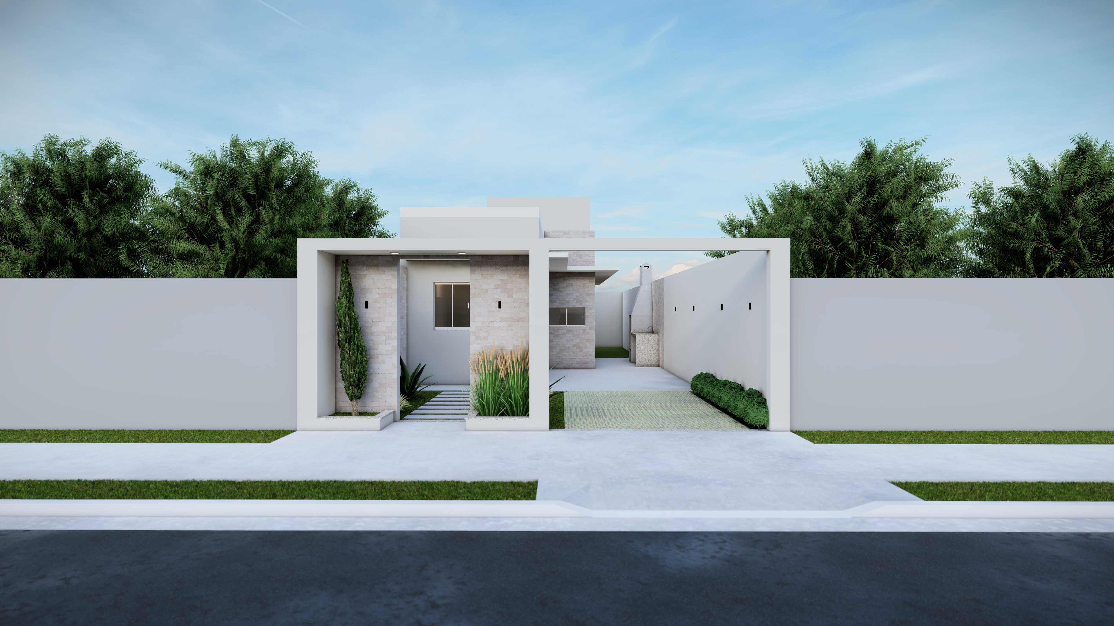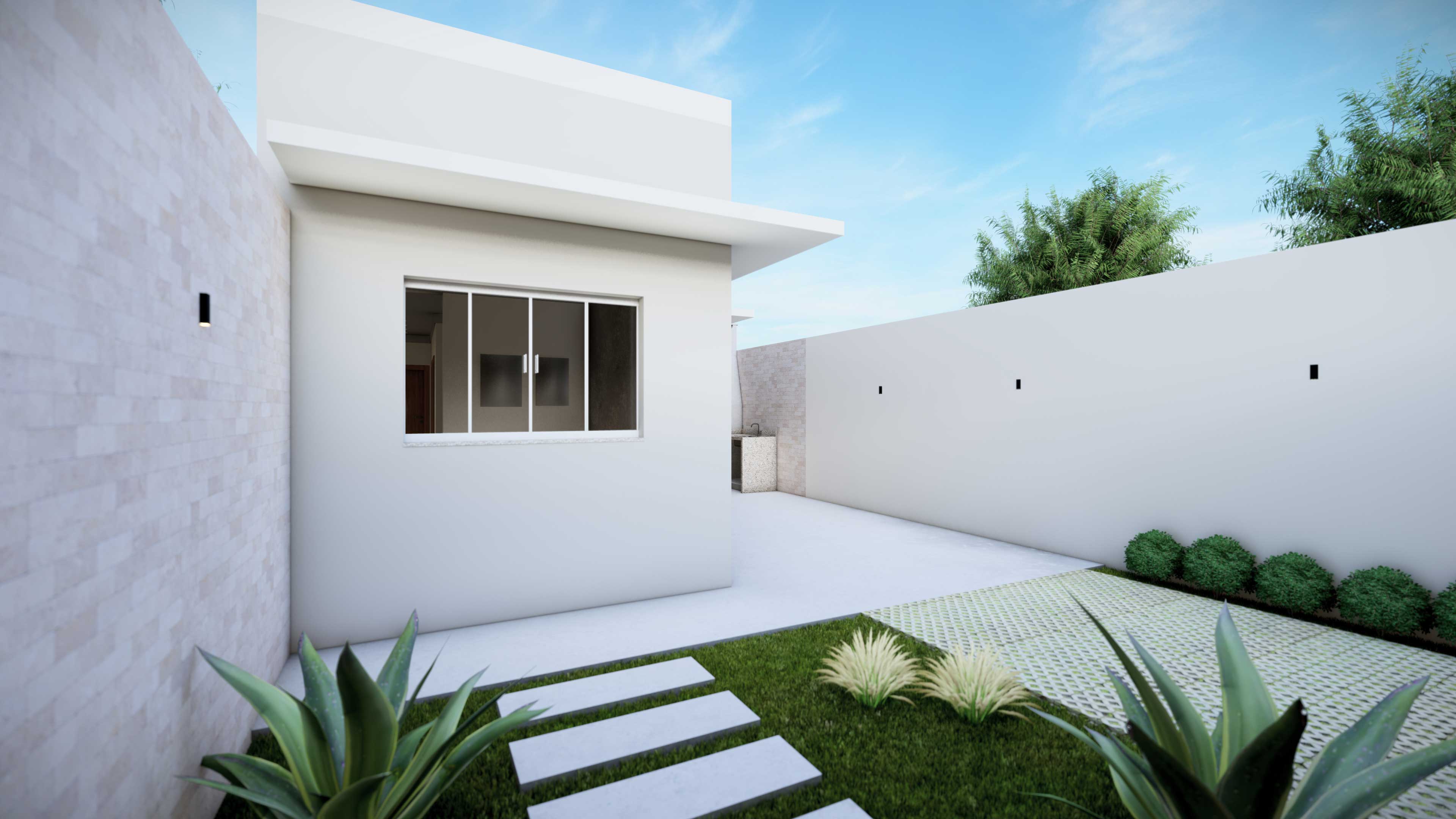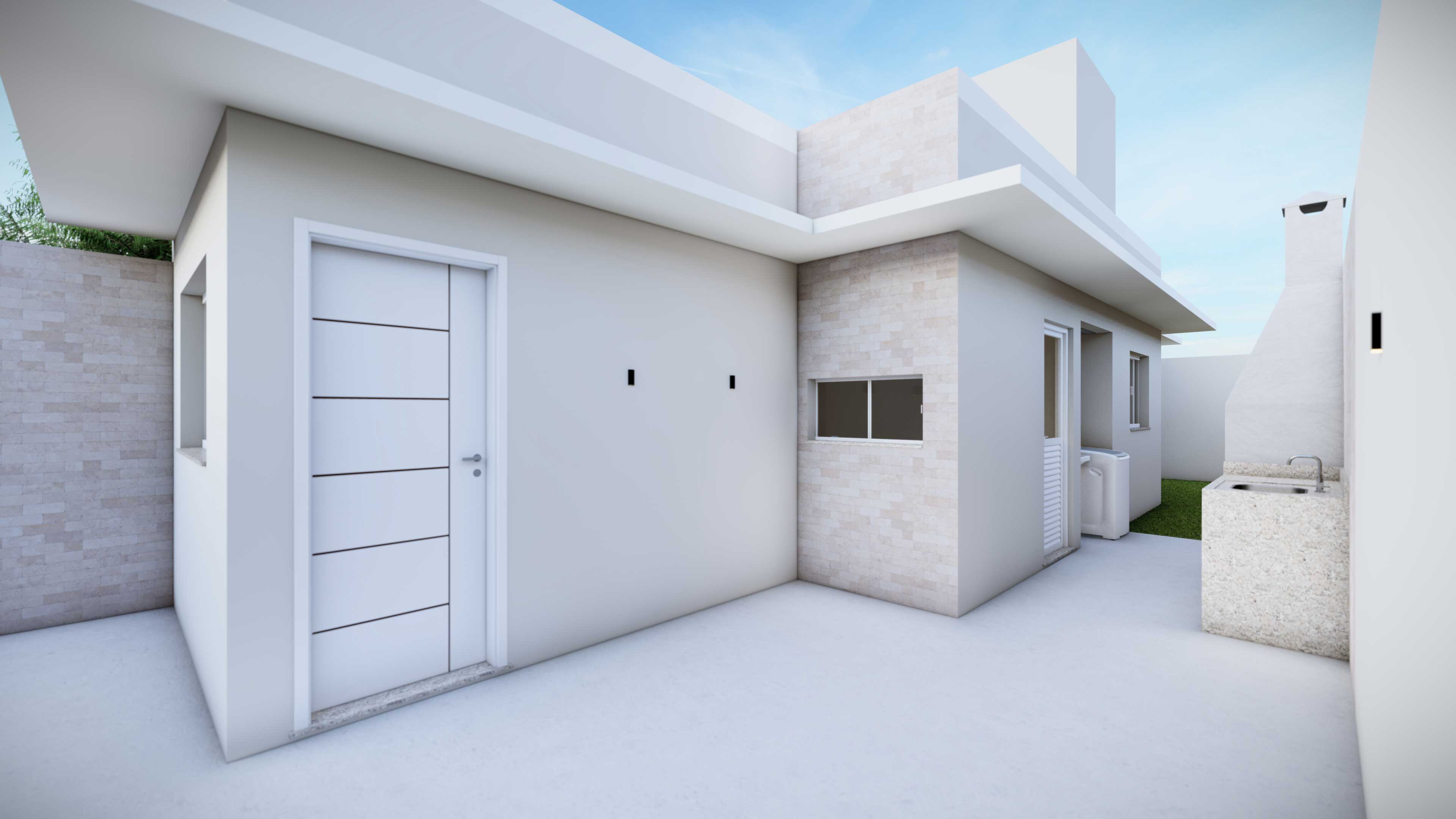 Casa térrea de layout otimizado, com 2 quartos, sala de estar, cozinha, banheiro social, área de serviço, área gourmet com churrasqueira e garagem. Projeto compacto, funcional e pensado para o melhor aproveitamento do terreno.