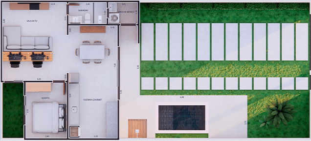 Projeto moderno e bem distribuído, desenvolvido para aproveitar cada metro quadrado com eficiência e conforto. Implantado em um terreno de 180 m², possui 62,25 m² de área construída, contemplando quarto, sala de estar, cozinha, banheiro social, área de serviço e garagem. A piscina complementa o projeto, trazendo lazer, valorização do imóvel e uma experiência de morar mais completa e agradável.