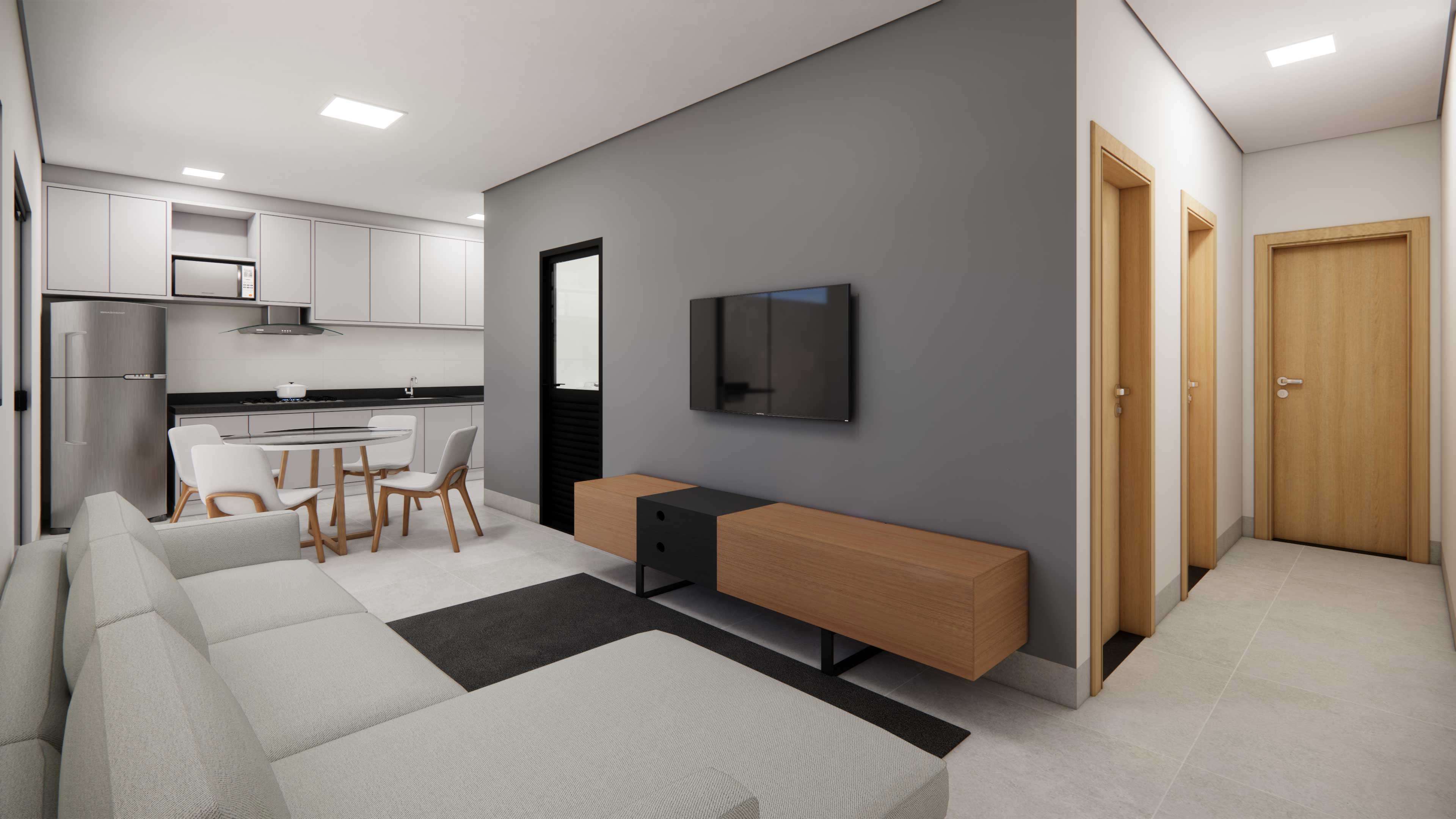 Conjunto residencial tripla, que une conforto, qualidade e um projeto arquitetônico único. Implantado em um terreno de 360,68 m², o empreendimento possui 168,78 m² de área construída, distribuídos em três unidades. Cada residência conta com 2 quartos, sala de estar, cozinha, banheiro, área de serviço, garagem e área gourmet com churrasqueira, proporcionando funcionalidade, conforto e excelente aproveitamento dos espaços para o dia a dia.