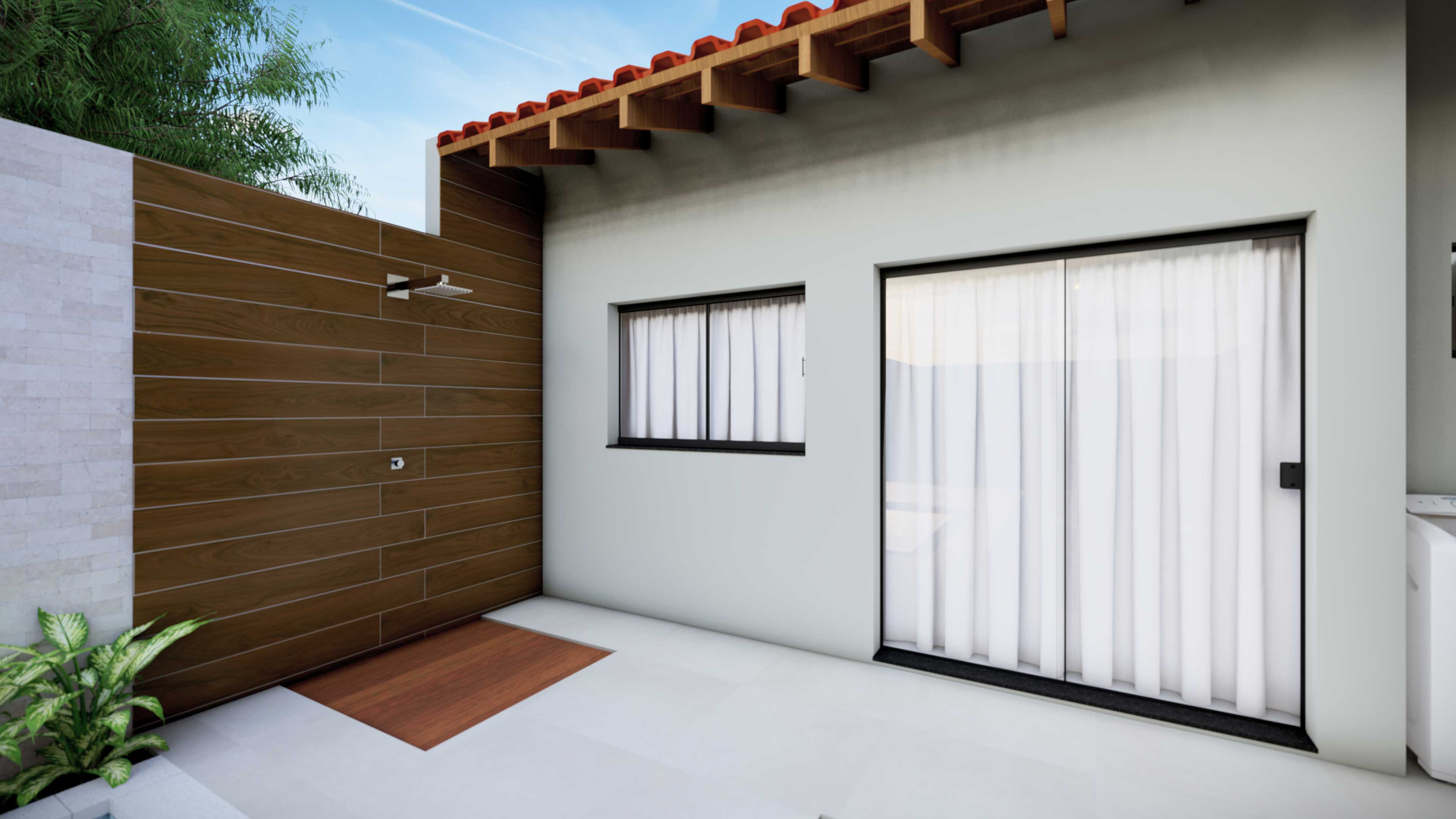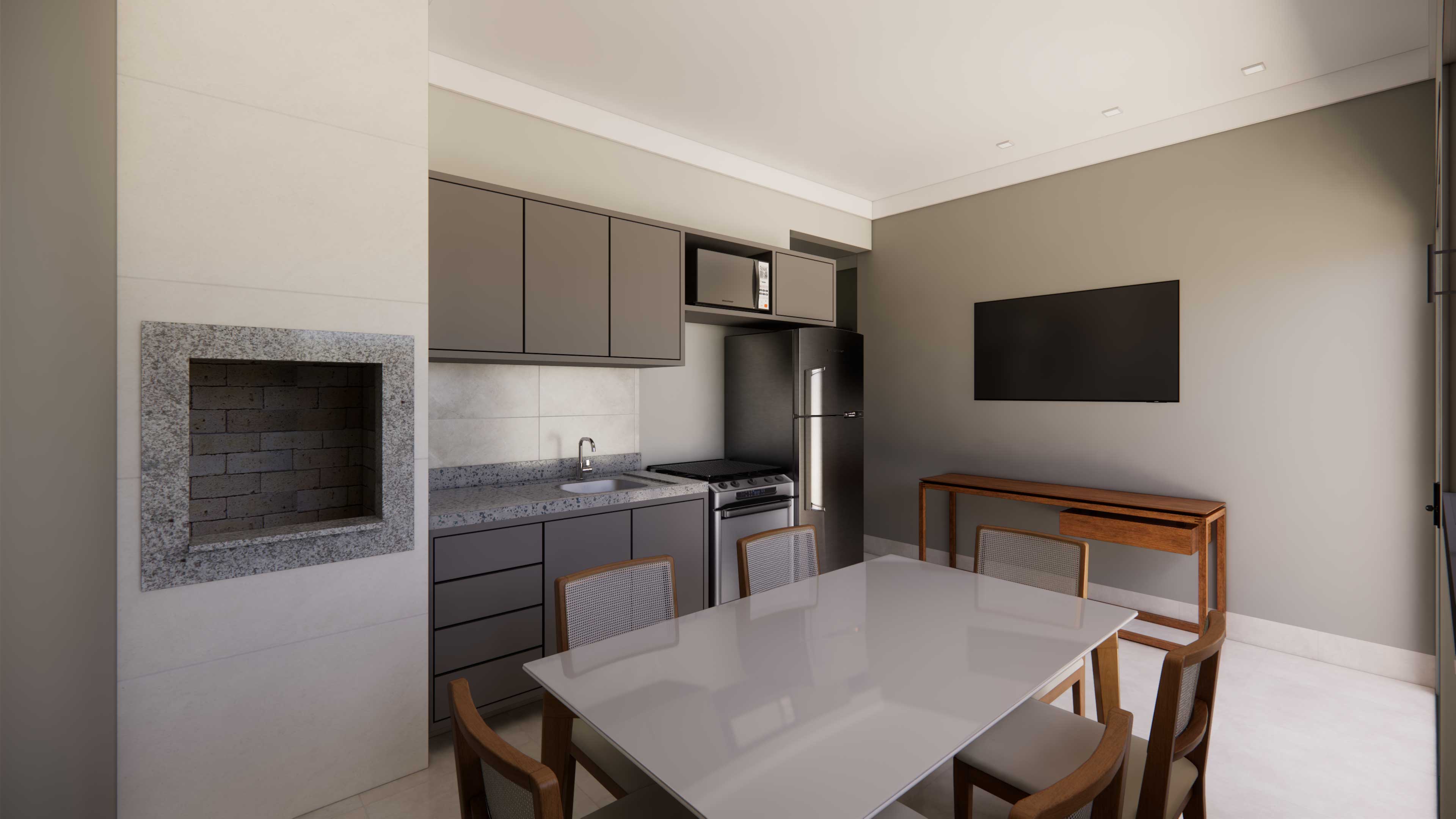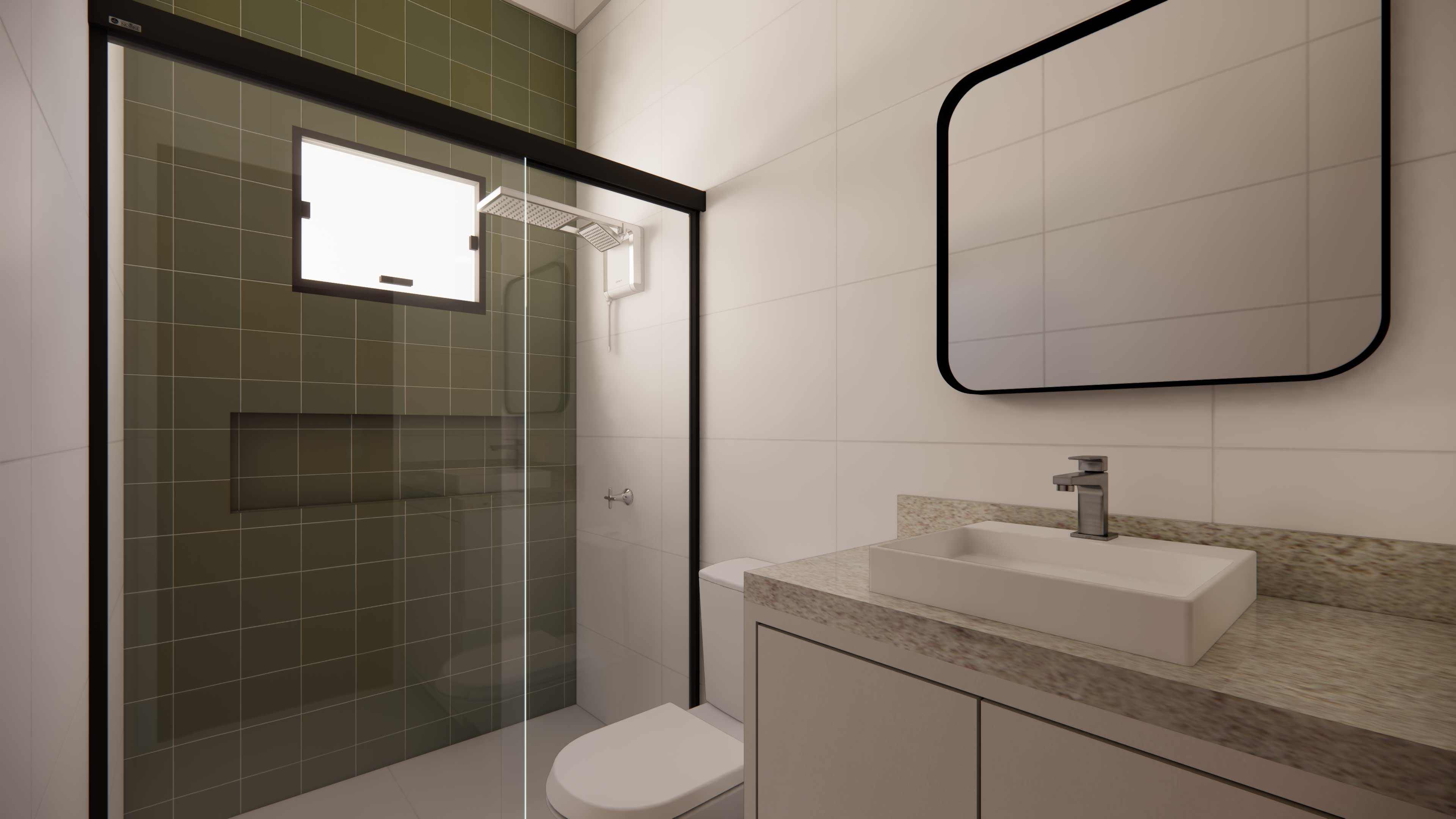 Casa térrea compacta e funcional, com 1 quarto, sala de estar, cozinha, banheiro social, área de serviço, área gourmet com churrasqueira e garagem. Projeto pensado para conforto, praticidade e integração com a área externa.